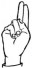 На ћирилици написано КОСТАДИН ТИМОТИЈЕВИЋ састоји се из 19 слова [?]. Исписано ћириличном једноручном азбуком за глувонеме: